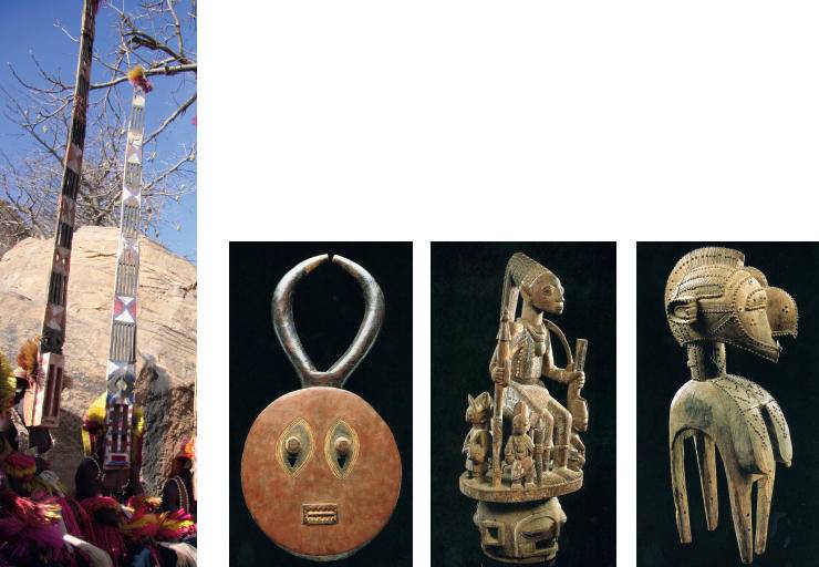 Если уж некоторые африканские маски впечатляют нас, привыкших к голливудским спецэффектам, то легко представить, какое впечатление они производят на местных жителей. Многие маски могут испугать одним внешним видом, – например, подростков на церемонии инициации. Приходя в священную рощу готовиться к посвящению в мужчины, они нередко впервые видят маскарадное представление и готовы поверить, что перед ними – сверхъестественное существо. Некоторые маски для этого специально хранят взаперти, доставая только для процедур инициации. А некоторые выносят из леса лишь во время кризисов – недорода, голода или смерти вождя, – чтобы защитить жизнь и благополучие жителей от злых духов и колдовства, источников любого несчастья.