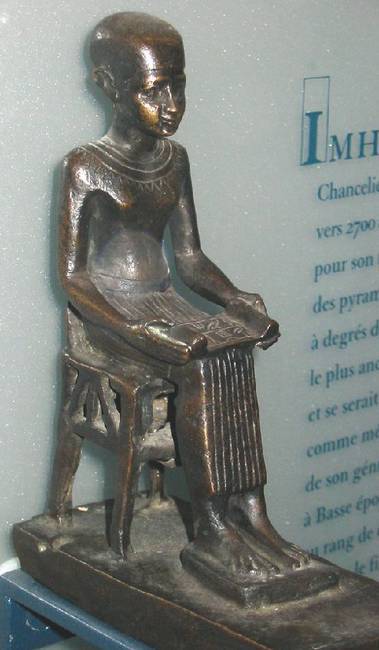 Придумать пирамиду древнему человеку было не так уже просто: до Имхотепа египтяне умели строить лишь прямоугольные храмы с наклонными к центру стенами – мастабы. Но ему пришла в голову гениальная идея поставить одну мастабу на другую, и так родилась ступенчатая пирамида, а Имхотеп стал основоположником архитектурной традиции Древнего царства. Кроме того, есть основания считать его также изобретателем колонны как элемента архитектуры. Кроме своих заслуг зодчего, Имхотеп считается автором фундаментального медицинского исследования, определявшего реальные причины многих болезней. В результате его называют и отцом медицины. Во время раскопок у ступенчатой пирамиды были найдены фрагменты статуи фараона Джосера, на пьедестале которой вместе с именем фараона стояла следующая надпись: «Имхотеп – хранитель сокровищницы царя Нижнего Египта, первый после царя в Верхнем Египте, распорядитель великого дворца, наследник Бога, главный жрец Гелиополя, строитель, архитектор, ваятель каменных ваз».