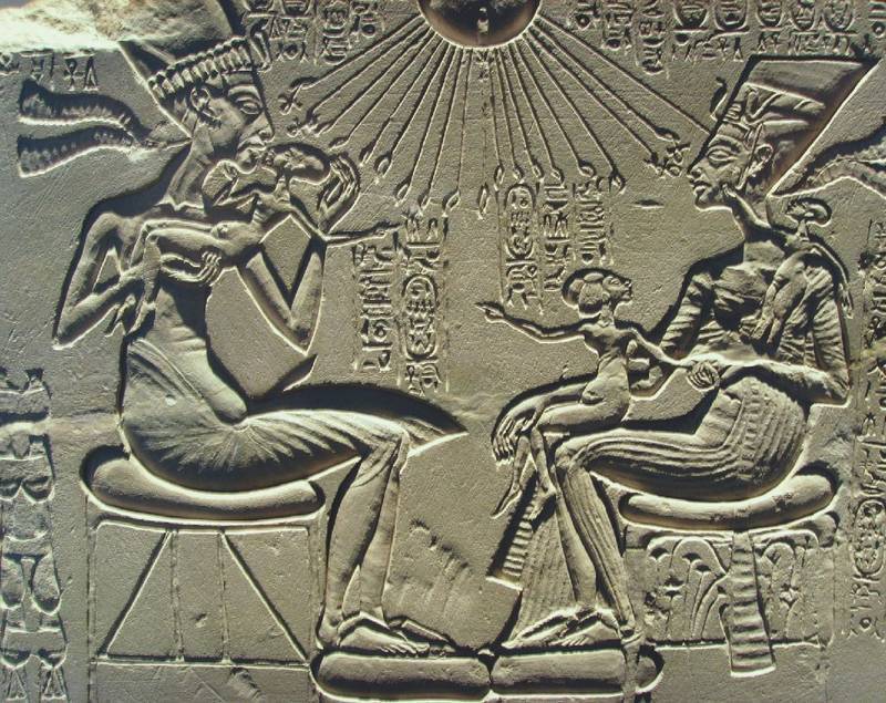 Фараон Эхнатон с женой Нефертити наслаждаются верой в единого бога