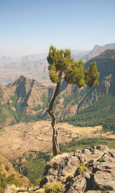 В то время как Килиманджаро носит звание главной вершины Африки, Эфиопское нагорье известно как крыша континента. Эта обширная горная область к востоку от Сахары была бы столь же засушливой, как великая пустыня, если бы не обильные дожди, которые выпадают здесь из-за того, что вершины сдерживают облака с Индийского океана от движения дальше на запад. Благодаря этому в высокогорном озере Тана рождается Голубой Нил, вместе со своим Белым братом несущий миллионы тонн воды на север, в Судан и Египет. На высоте до 2,5 тыс. м цветут саванны и беспощадно палит солнце, но выше, вплоть до главной горы Эфиопии Рас-Дашен, простирается царство дега, как его обычно называют, – уникальный высотный климат нагорья, делающий эту страну столь непохожей на всю остальную Африку. В этом районе произрастает множество уникальных растений, включая тефф, материал для эфиопского хлеба инжеры, и кофе, родиной которого также является Эфиопское нагорье. Эндемичных животных здесь тоже порядком, среди прочих бабуин гелада и эфиопский волк, которые принципиально не заходят больше ни в одну страну в мире. Собственно, своей уникальной, изолированной культурой и эфиопы тоже во многом обязаны труднодоступному нагорью, которое не раз выручало их при нашествиях завоевателей.