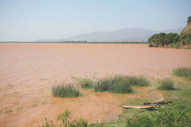 Красный цвет озера Чамо местные жители объясняют кровью жертв крокодилов, Эфиопия