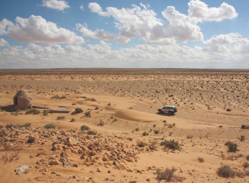 Путь по тунисской Сахаре проходит через живописные холмы и остатки древнеримских укреплений