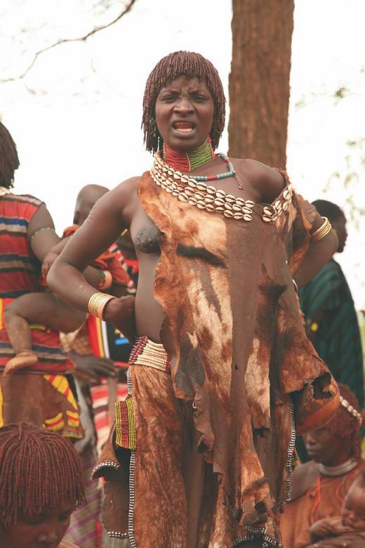 Воловьи шкуры составляют ансамбль повседневного костюма народа хамар, Эфиопия