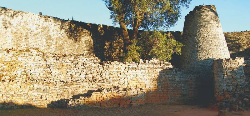 Новость об открытии руин Великого Зимбабве, как местные жители называли покинутый город, сразу же облетела Европу. Один за другим учёные, путешественники и миссионеры, приезжавшие осматривать руины, делали вывод, что Зимбабве ни в коем случае не могли построить африканцы. Овальная стена длиной 250 метров, сложенная из миллиона гранитных блоков, была сооружена с таким ювелирным мастерством, что камни плотно прилегали друг к другу безо всякого соединительного раствора. А в центре крепости – ещё одна загадка – располагалась одиннадцатиметровая коническая башня, целиком сложенная из тех же каменных блоков и не имеющая внутренних помещений.
