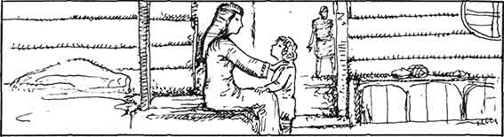 Позади нее у очага, на приличном расстоянии, сидел Снорри, укутанный в одеяла. Оттуда зазвучал детский голосок: