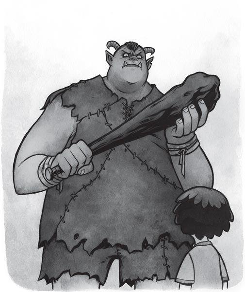 Великан крепче сжал дубину, как будто у него руки зачесались ею воспользоваться. Его кожа была зеленой и пятнистой, как покрытый водорослями пруд, а из-за нижней губы торчали два желтых бивня.