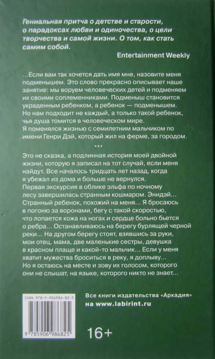 Я отдал все долги Генри Дэю, закончил книгу, и завтра утром уйду отсюда навсегда. Если вы заметили, я почти не касался в своих записках вопросов магии или устройства нашего мира, но вам незачем о них знать. Нас осталось не так уж много, и, возможно, скоро мы вообще исчезнем. В современном мире детей поджидают гораздо более серьезные опасности, чем встреча с подменышами. В один прекрасный день про нас все забудут, разве что пара-тройка каких-нибудь фольклористов упомянет хобгоблинов, эльфов и фей в своих никому не нужных скучных трудах. Подбираясь к концу своей истории, я хочу вспомнить всех, кого больше нет с нами. И попрощаться с теми, кого оставляю здесь: с Луковкой, Бекой, Чевизори и с двумя моими самыми лучшими друзьями на этом свете – Смолахом и Лусхогом – ловким Мышем… С детьми, позабывшими себя… Надеюсь, они будут не слишком скучать без меня. В конце концов, все мы рано или поздно уходим.