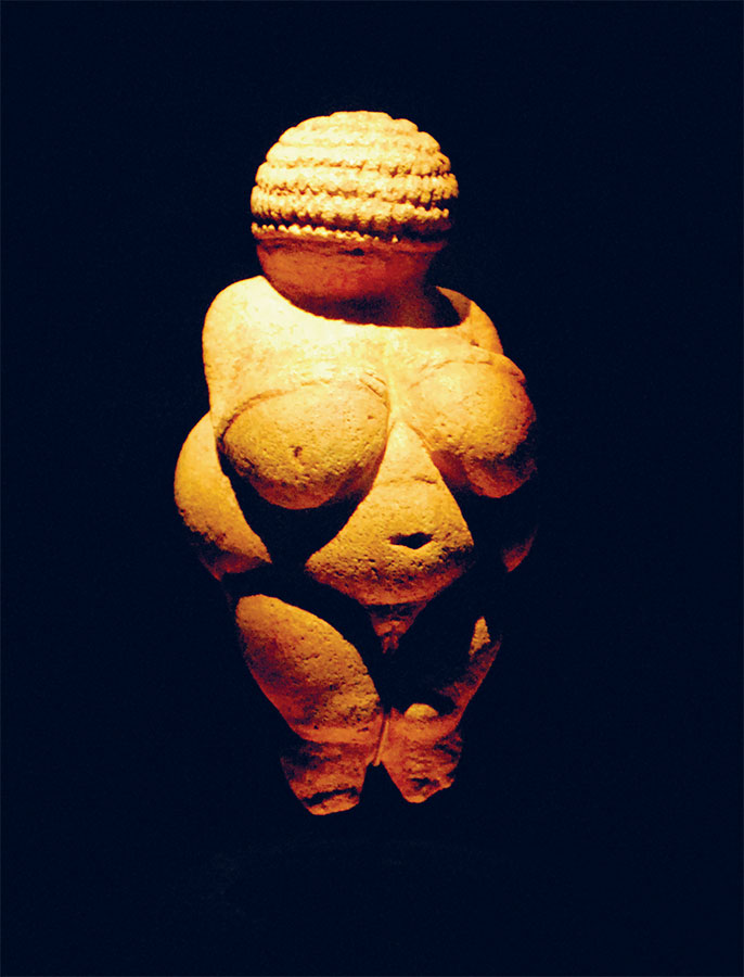 Название «Венера» отражает скорее культуру народа, нашедшего фигурку, чем культуру племени, создавшего ее. Она не является изображением Венеры – римской богини любви, эротики и красоты, которая появилась много тысячелетий спустя. Мы никак не можем узнать наверняка, является ли столь очаровательный объект, покрытый охрой, на данный момент больше известный в англоязычной литературе как Женщина из Виллендорфа (Woman of Willendorf) – или ее археологические «сестры», – изображением богини любви или, если уж на то пошло, плодородия, магии, медицины или желания. Если выйти за рамки немногочисленных известных нам фактов об этом и других подобных артефактах, мы окажемся в царстве фантазии и, возможно, проецирования привычного на неизвестное.