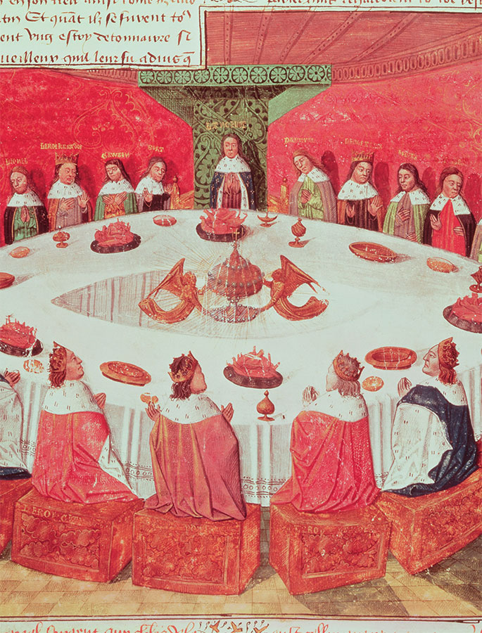 Святой Грааль – чаша, которая, как говорят, использовалась сначала Иисусом на Тайной вечере, а затем Иосифом Аримафейским для сбора крови Иисуса во время распятия, остается ярким символом поп-культуры XXI века благодаря таким триллерам, как «Код да Винчи» Дэна Брауна. «Круглый стол и Святой Грааль» из книги «Мессир Ланселот Озерный», 1470.