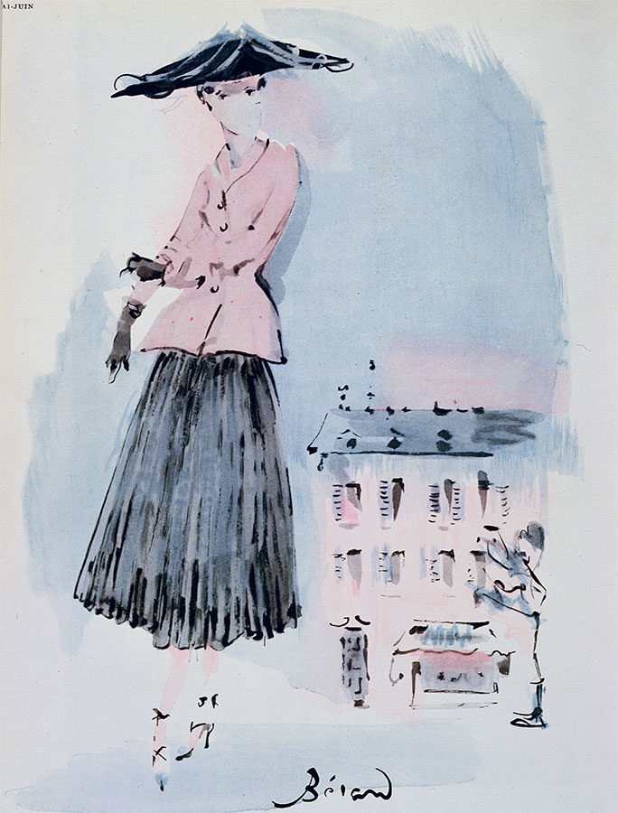 Новый образ от Кристиана Диора возродил моду в эпоху после Второй мировой войны. Иллюстратор Кристиан Берар изобразил сочетание мягкости и структурности, свойственное творениям дизайнера.