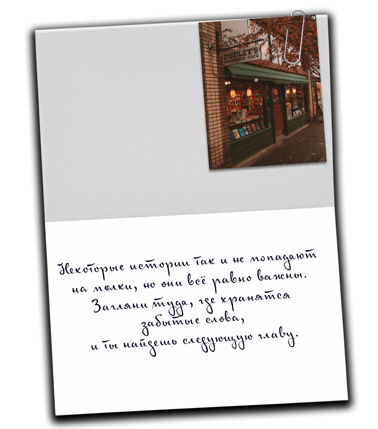 Её губы приоткрылись. Она провела рукой по странице, её глаза блестели в тусклом свете. На мгновение она показалась совершенно обезоруженной, словно кто-то залез ей в душу и вытащил наружу тайну, которой она ни с кем не делилась.