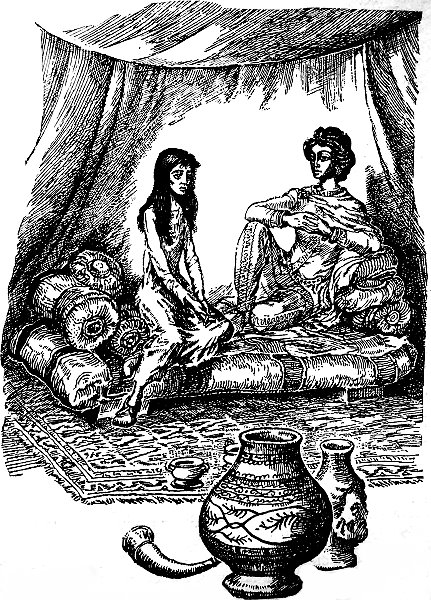 Когда привели Сфрагис, Байт усадила ее рядом на парчовых подушках, велела подать ей виноград, финики и разных сластей. А потом очень ласково спросила ее: