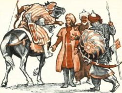 Пробыв несколько дней в Ведаре и получив нужные ему товары, Якуб стал собираться домой. Но ткач Ибрагим предупредил его, что в пути может случиться неприятность, если попадешься в руки телохранителей правителя Самарканда. Вот уже несколько дней, как они рыщут по городу в поисках лазутчиков, будто бы прибывших в Самарканд под видом купцов, странников и суфиев.[45]45