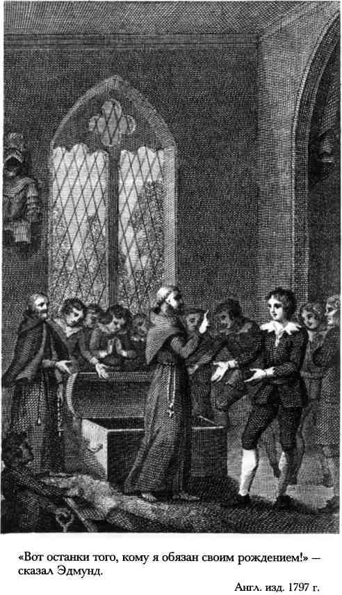 – Я начну с того, – заявил Эдмунд, – что прикажу изготовить гроб для этих благородных останков. Я надеюсь найти также тело моей родительницы и похоронить его вместе с прахом отца в освященной земле. Несчастные супруги! Вы наконец упокоитесь вместе! Ваш сын отдаст вам последний долг!