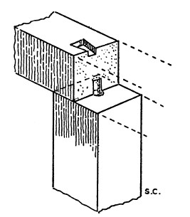 Рис. 50.Углубление в форме «ласточкина хвоста», сделанное в архитраве Храма Сфинкса в Гизе, с отверстием, через которое нагель доходил до верхней части колонны