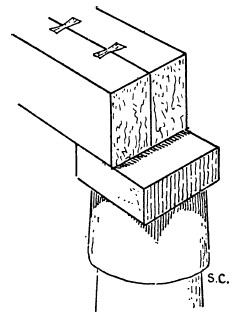 Рис. 52.«Ласточкин хвост» и деревянная скоба, длиной около 1,5 м, в архитраве Двора Шешонка в Карнаке