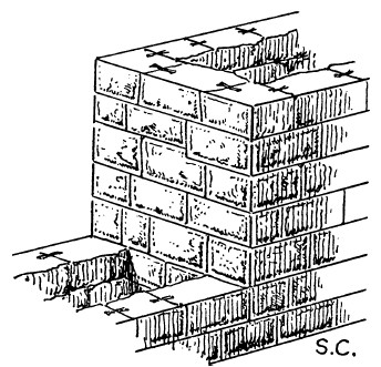 Иногда строители создавали вогнутую кладку по методам кирпичного строительства. Примеры такой кладки можно увидеть в некоторых древних нубийских домах в Калабше (рис. 57) и Тафе.