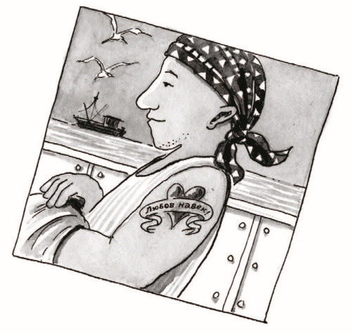 – Посмотри, пап! – шепнул он. – У того типа татуировка с ошибкой. На руке написано: «Любов навек!» Но «любов» – без мягкого знака.