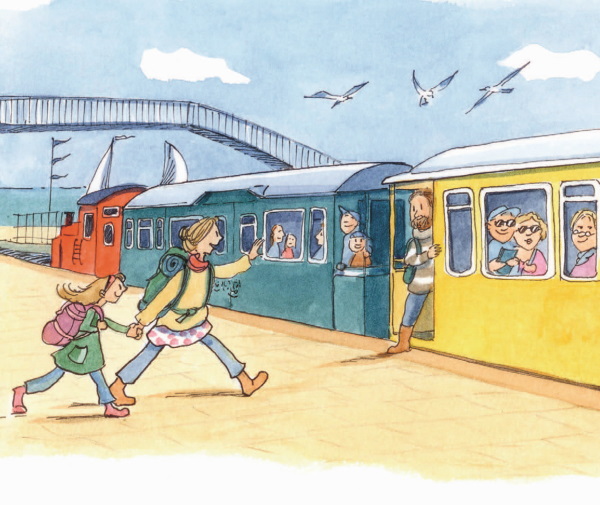 Багаж переправляли к вокзалу Лангеога по островной железной дороге. Оттуда чемоданы и саквояжи развозили по гостиницам и апартаментам на небольших грузовичках. Островная железная дорога с её разноцветными вагонами очень понравилась Эмме. Ей тоже захотелось по ней прокатиться.