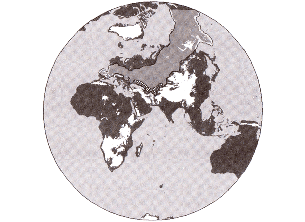 [Закрыть]. Ледниковые щиты здесь были намного меньше, чем в предыдущие холодные периоды. Одним из объяснений может быть то, что ледяной покров Скандинавии и района Баренцева и Карского морей, находящийся дальше на западе, был настолько крепким, что за счет этого снизилось поступление влаги, достигавшей Дальнего Востока. Другие же ученые поддерживали мысль о непрерывном обширном циркумполярном ледяном покрове, который достигал максимальной площади 39 миллионов квадратных километров[273]273