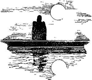 Он подошел ближе, накидки отпрянули от него. Он остановился на краю равнины, его сапог скользнул по песку и оставил четкий след, его глаза уставились на мечущиеся, размытые тени. Он надеялся увидеть за этими развевающимися накидками человеческое или какое-нибудь другое материальное тело. Но он ждал напрасно. Накидки казались языками пламени, кистью, которая танцевала на древнем холсте песка, оставляя мазки.