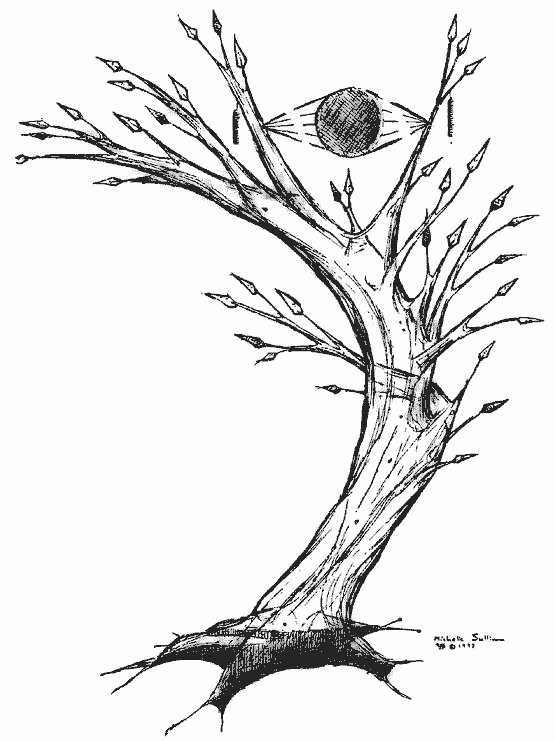 Как вы думаете, могли бы разумные технологически развитые инопланетяне быть ещё менее гуманоидными, чем лебедяне? Мой любимый негуманоидный инопланетянин в научной фантастике – это крикун из «Межпланетной совести» (“Conscience Interplanetary”) Джозефа Грина. Крикун живёт на планете Кристалл, которая обладает кислородной атмосферой. Крикун похож на куст размером с человека со стволом, сделанным из кристаллов и металла (рис. 1.10), а листья существа состоят из острого стекла. На самом деле крикун – это отдельная единица всепланетного растительного разума на кремниевой основе. Земной аналогией будет муравей – независимое существо, образующее колонию с характеристиками группового разума. Муравьи – углеродная форма жизни, но на планете Кристалл вся жизнь основана на кремнии и металлических элементах.