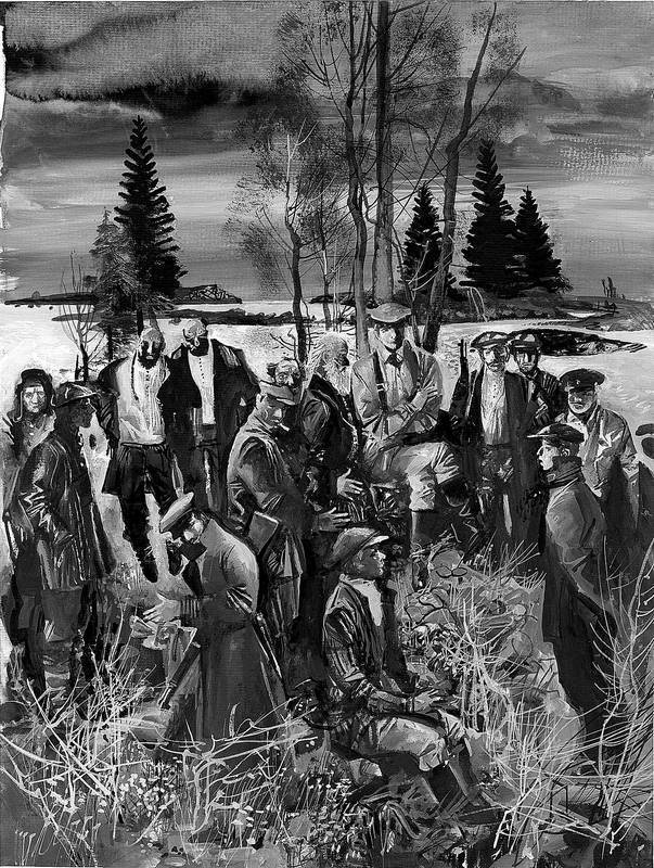 Теперь они сидели на берегу и вкушали яств: Артём, двое красноармейцев, лагерники…