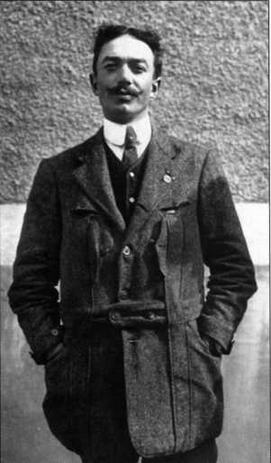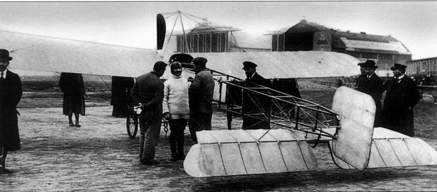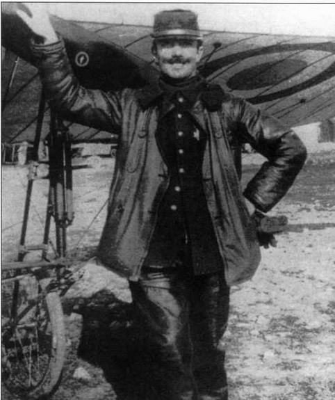 Пегу в военной форме со своим самолетом вскоре после начала боевых действий. На плоскостях «Блерио» нанесены французские опознавательные знаки