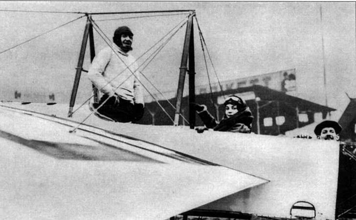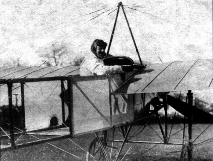 Пегу в кабине «Блерио»-XI перед полетом на отработку фигур высшего пилотажа