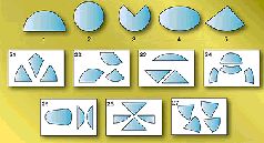 2. Ниже под номерами 21, 22, 23, 24, 25, 26, 27 приведены фигуры, разбитые на части. Вам следует мысленно соединить эти части и определить, какая из фигур – под номерами 1, 2, 3, 4 или 5 – получится.