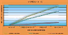 Современные системы для измерения IQ гораздо сложнее и разнообразнее тестов Бине, но основная задача у них прежняя прогнозировать способность человека (главным образом, молодого) к обучению. Успешно ли она выполняется? Не совсем. Обширная статистика, собранная за многие годы применения IQ, показывает, что соотношение IQ и школьной успеваемости выглядит примерно так (см. график ниже).