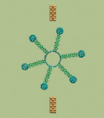 Чтобы решить эту проблему, было решено позаимствовать идеи у природы. Некоторые бактерии передвигаются благодаря специальным жгутикам, которые приводятся в действие биомолекулярными моторами на туннелирующих протонах. Похожую искусственную конструкцию, в которой вместо протонов будут туннелировать электроны, решили просчитать химики из Иллинойского университета в Чикаго. Для этого они воспользовались полуклассическим методом молекулярной динамики. Ось ротора сделали из углеродной нанотрубки, к которой присоединяли три или шесть «балок» из длинных молекул с проводящими углеродными шарами – фуллеренами – на концах. Конструкцию, напоминающую рабочее колесо водяной мельницы, поместили между двумя электродами из проводящих молекул. Если на них подать напряжение, то электроны станут по одному туннелировать на проводящие шары и создавать вращающий момент, который приведет ротор в движение. На ось-нанотрубку можно посадить несколько колес, что увеличит крутящий момент и сделает вращение более плавным.