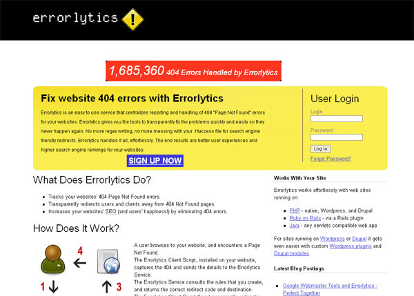 На заре появления современного веба исследователи, занимавшиеся проектированием гипертекстовых сред, сталкивались со следующей проблемой: как проконтролировать, что документ, на который хочется поставить гиперссылку, действительно существует. Тим Бернерс-Ли предложил радикальное решение: ничего контролировать не надо, а если кто-то попытается пройти по ссылке на несуществующий документ, то ему надо выдать сообщение об ошибке – пресловутую "ошибку 404". Конечно, столь простое решение сложной проблемы не может не иметь негативных последствий, и ныне от обилия "битых ссылок" страдают и посетители веб-сайтов, и их разработчики. Помочь тут может ресурс Errorlytics, позволяющий отслеживать, откуда пользователи попадают на "страницу 404", и на основе этих данных не только собрать статистику по "битым ссылкам", но и автоматически перенаправить пользователя (в соответствии с заданными правилами) на наиболее подходящий раздел сайта.