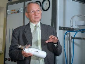 – Конкурентов у нас нет по микроволновой плазмохимической установке для производства нанопорошка. Приборы для фильтрации воздуха с фотокаталитическим элементом производят еще несколько компаний. Первым появился прибор японской фирмы Daikin, затем приборы китайских и немецких производителей. Однако неверно было бы скрыть, что эффективность нашего прибора в несколько раз больше. Дело в том, что наш фильтрующий элемент сделан на основе пористого стекла (у Daikin – ткань). Стекло – инертный с химической точки зрения материал, практически вечный. Пористость увеличивает поверхность соприкосновения очистительного элемента с воздухом. Разработанный нами порошок, нанесенный на стекло, также не имеет аналогов по эффективности в данной разработке. Самое важное: поскольку процесс фотокаталитический, то идет не улавливание примесей, а их полное разложение до углекислого газа и воды. В фильтре ничего не остается, он не загрязняется. Заменять придется не фильтрующий элемент, а, разве что, ультрафиолетовую лампу, срок службы которой велик. Фильтр способен поддерживать чистоту воздуха в помещении площадью около двадцати квадратных метров, пропуская через себя около десяти кубических метров воздуха в час. Прибор бесшумен, воздух движется в нем за счет конвекции, а энергопотребление – около сорока ватт.