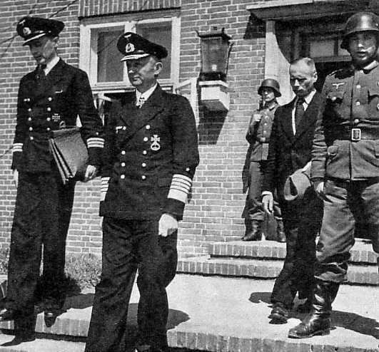 Карл Дёниц (в центре) и его адъютант Вальтер Людде-Нойрат в 1945 в Мюрвике