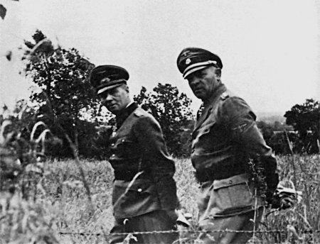 Главнокомандующий группой армий «Б» генерал-фельдмаршал Эрвин Роммель и командир I танкового корпуса СС обергруппенфюрер СС, генерал войск СС Зепп Дитрих в Нормандии незадолго до начала высадки войск союзников, 1944 год.