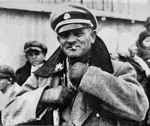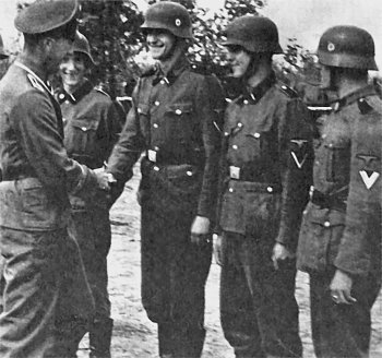Командир «Лейбштандарта СС Адольф Гитлер» бригадефюрер СС и генерал-майор войск СС Теодор Виш. У него на шее Рыцарский крест с дубовыми листьями и мечами, на правом кармане – Золотой Германский крест, на левом кармане – Железный крест 1-го класса, ниже – Штурмовой знак, правее – черный знак за ранение.