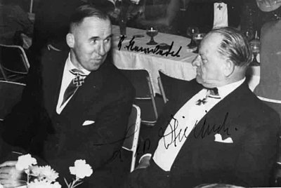 Зепп Дитрих (справа) после войны на встрече ветеранов.