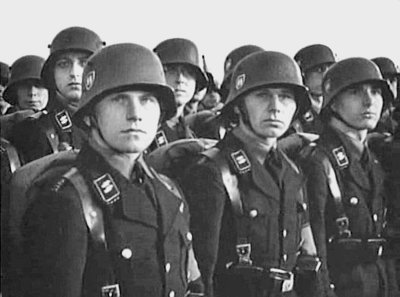 Бойцы «Лейбштандарта» в парадной (черной) еще довоенной форме.