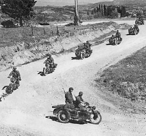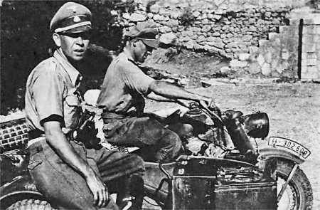 Мотоциклетные части «Лейбштандарта» на дорогах Греции, апрель 1941 года.