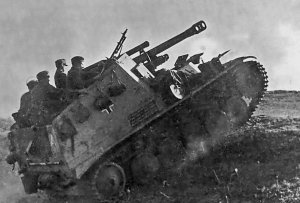 Самоходное артиллерийское орудие «Веспе» (на шасси танка PzKpfw II со 105-мм гаубицей leFH-18/12/28) находилось на вооружении дивизионов штурмовой артиллерии СС.