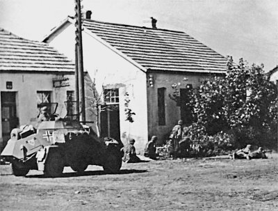 Бронетранспортер и пехота «Лейбштандарта» в боях на Украине, август 1941 года.