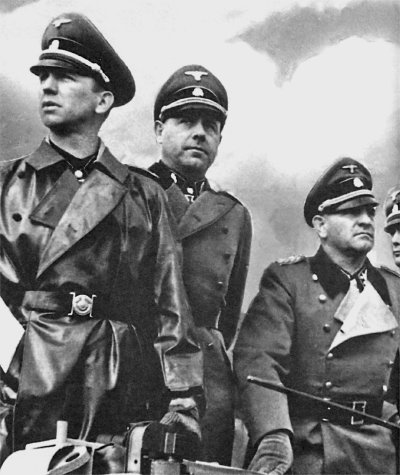 Франция, 1944 год (слева направо): Курт Мейер, Фриц де Витт, Зепп Дитрих.