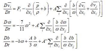 А.Н. Колмогоров в работе [2,с.294] показал физическую модель турбулентности (в соответствии с Тейлором и Ричардсоном), состоящую В накладывании различных по масштабу турбулентных пульсаций на осредененный поток. Наибольшим масштабом является мастшаб L «пути перемешивания», наименьшим масштабом является масштаю λ, на котором вязкость оказывает влияение. Пульсации от курупных масштабов передают энергию пульсациям меньших масштабов. В результате этого возникает поток энергии, диссипация которой происходит за счет сил вязкого торения на масштабе λ. Колмогоров предложил следующие уравнения турбулентного движения исходя из локальных свойств турбулентности [2,с.295]: