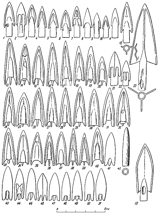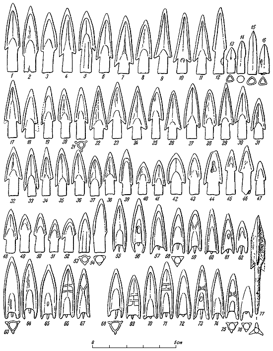 Рис. 18. Наконечники стрел V в. до н. э. из Нижнего Поволжья.