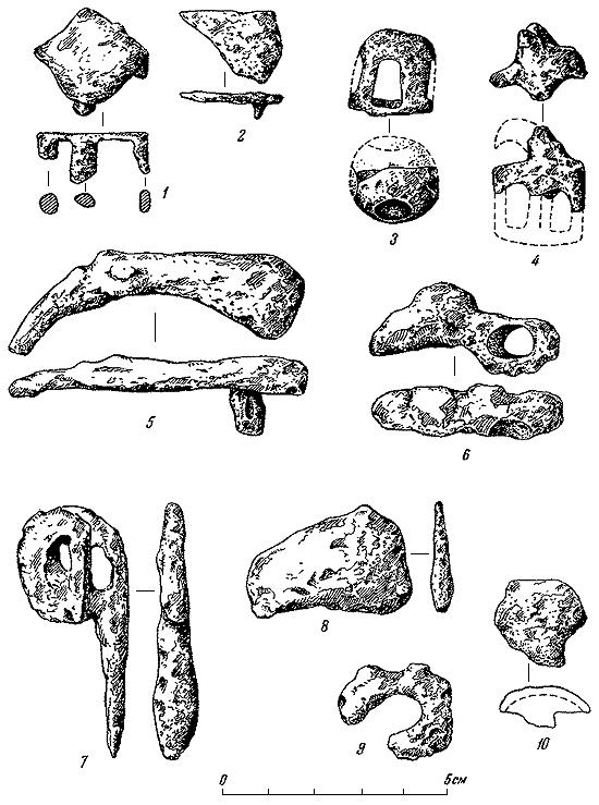 Рис. 50. Предметы конского убора конца VI–V вв. до н. э. в Южном Приуралье.