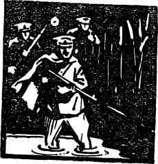 Схватив автомат, он выскочил на улицу и направился в сторону Чугунного моста. За ним, не отставая ни на шаг, бежали еще десять вооруженных работников милиции. На улицах было темно: город находился в осаде.
