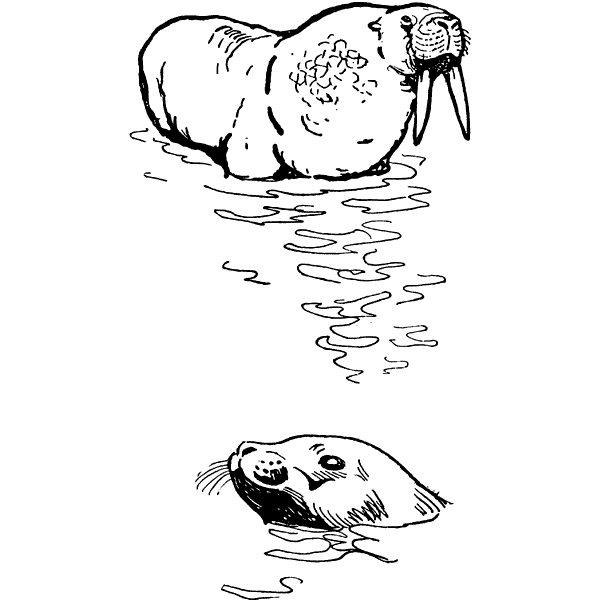В весенние и летние месяцы жизнь здесь бьет ключом. Каждый раз, когда летом входишь на корабле в полярные льды, поражаешься богатству царящей тут жизни. Тысячи разнообразных птиц – чайки, кайры, чистики, люрики, глупыши, поморники, гагары, бакланы и кулики – кормятся на разводьях и в полыньях. Стаями, парами и в одиночку носятся они над морем и кромкой льдов, наполняя воздух гомоном. Сотни тысяч уток гнездятся на берегах заливов. Тысячные стаи гусей откармливаются в приморских тундрах. Всюду шныряют юркие, вертлявые кулики. В тяжелом полете проносятся вдоль берега гаги. Неподвижно, как часовые, сидят на возвышенностях тундры белые полярные совы, подстерегая зазевавшихся леммингов[1]1