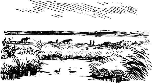 Когда солнце поднимается высоко и начинает припекать, мы останавливаемся около какого-нибудь озера на отдых. Развьюченные лошади сначала катаются по траве, потом щиплют ее. Комары сразу облепляют их потные бока. Утолив голод, лошади опять валятся на землю, давя комаров, или ходят по кустам и трутся боками о ветки. Животные с каждым днем худеют.