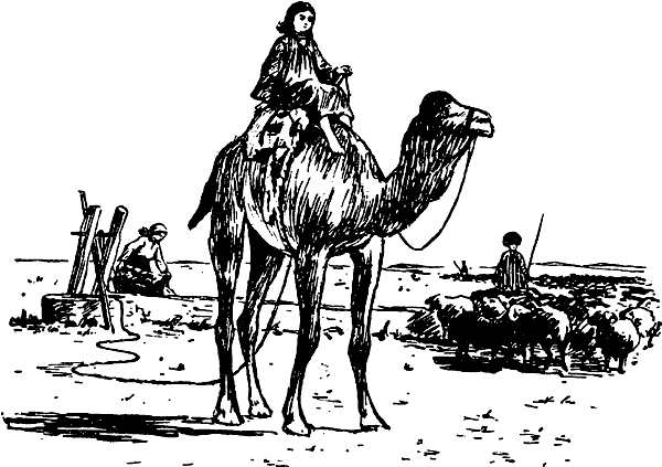 Девочка подгоняла верблюда, и он послушно приближался к колодцу; ведро при этом опускалось и наполнялось водой. Тогда девочка поворачивала верблюда, и он не спеша удалялся от колодца, натягивая канат и поднимая полное ведро. Как только ведро оказывалось на уровне бассейна, стоявшая возле колодца женщина громким возгласом останавливала верблюда и выливала воду из ведра в бассейн. Вода стекала в тот самый желоб, из которого пили овцы.